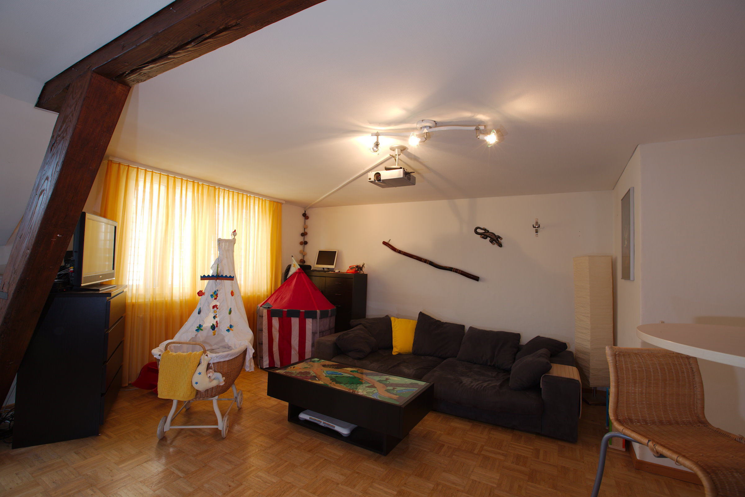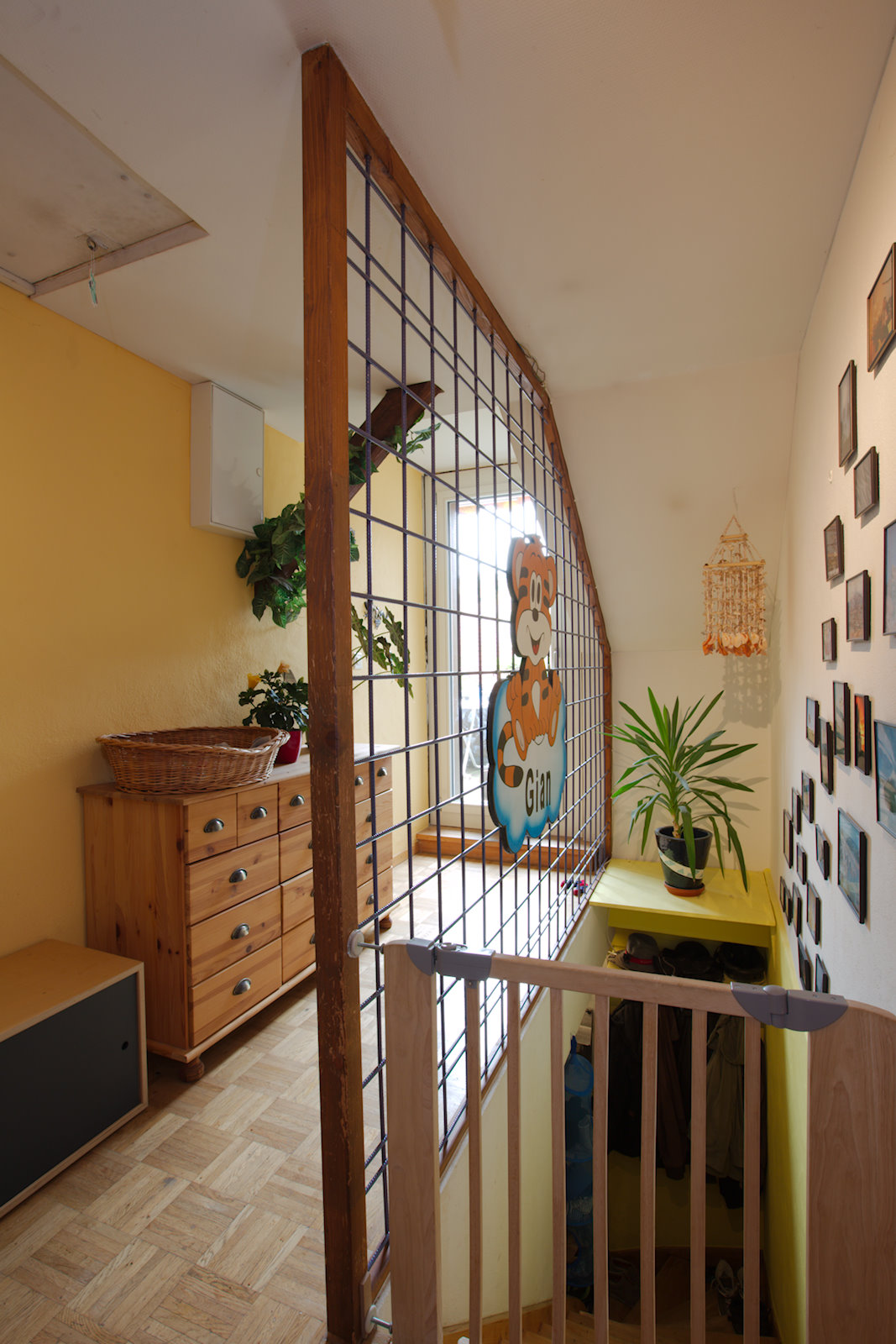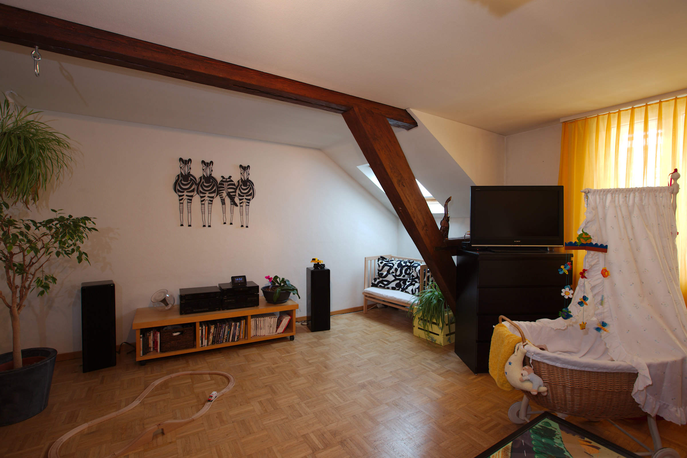 Die Wohnung liegt im 2. OG, der Eingang ist im 1. OG. Unten an der Treppe hat es nochmals ca. 1.1x1.5m Fläche.
