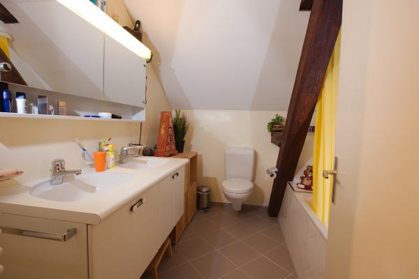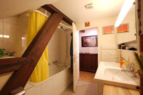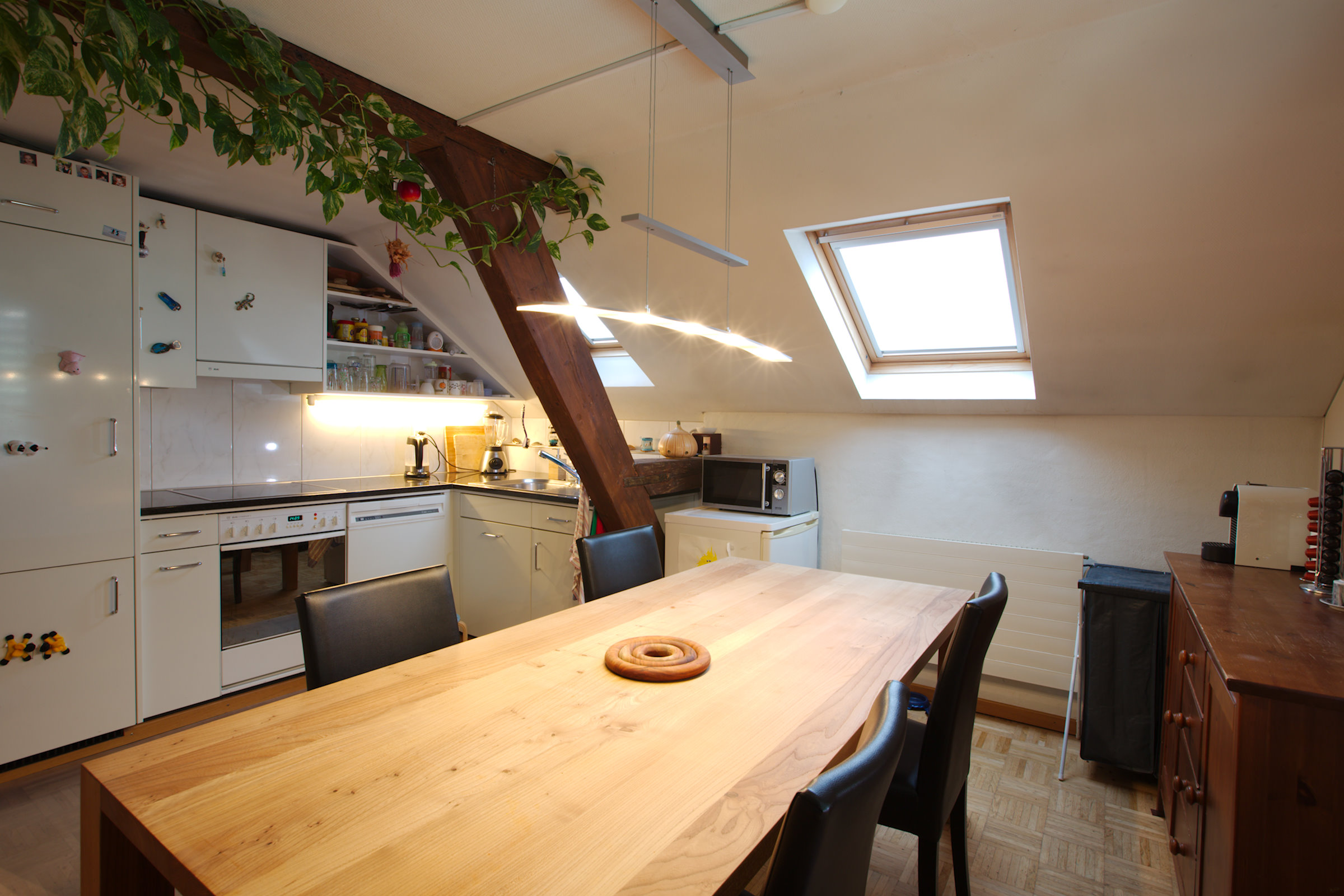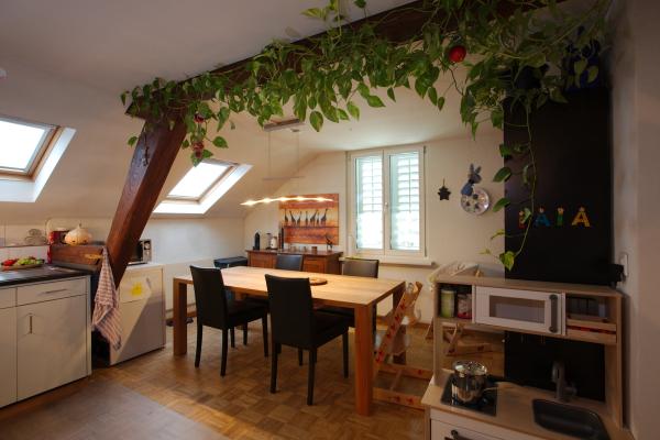 Die Altbauwohnung verfügt über eine moderne Küche mit Natursteinabdeckung sowie ein grosses helles Bad mit zwei Lavabos. Diverse Sichtbalken in Stube, Küche, Bad, einem Zimmer und im Korridor sorgen für eine sehr heimelige Atmosphäre. Die ganze Wohnung ist mit Parkett ausgelegt.